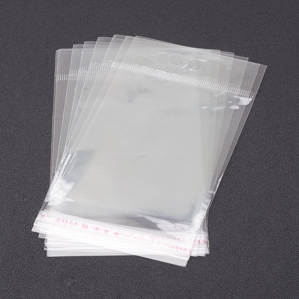 Pearl Film Cellophane Bags, Self-Adhesive Sealing, with Hang Hole, used for packing jewelleries and other items.